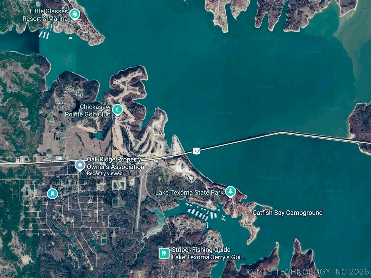 Prime investment opportunity with 2 side by side lots, just one mile from Lake Texoma, West Bay Casino, and the future Hard Rock Hotel & Casino resort, and approximately one hour north of the Dallas-Fort Worth metroplex. Located in the desirable gated Oak Ridge community, directly across Highway 70 from Chickasaw Pointe Golf Club and nearby luxury homes, this homesite offers strong upside potential in a rapidly developing area. Community amenities include two swimming pools, multiple stocked ponds, and tennis and pickleball courts. HOA is mandatory with restrictions requiring a minimum 1,600 sq ft site-built home and at least a one-car garage. Buyers may bring their own builder. Septic system installation is coordinated through the HOA for an associated fee. With increasing demand near Lake Texoma, marina access, golf, gaming, and future resort development, this is an excellent opportunity for investment, vacation home, or primary residence.