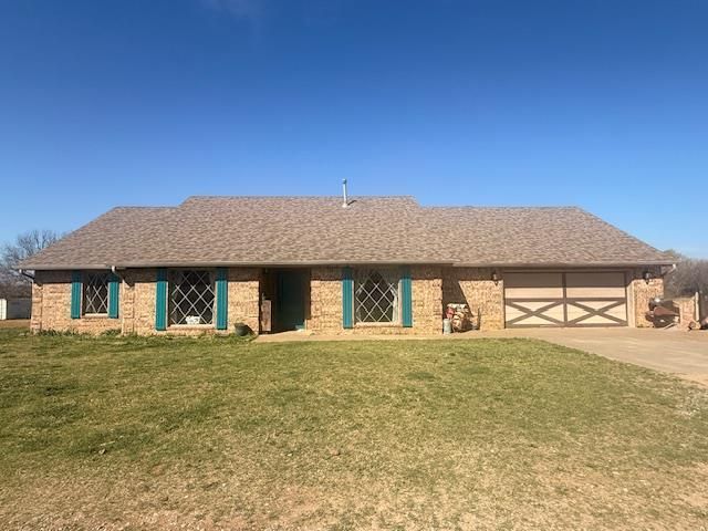 Stunning move-in ready horse property on 7.63 Acres, Brand new barn with stalls, and a stocked Pond! The home has it all with 4 bedrooms, a designated study and large eat-in dining room with plenty of options for flex space. The 60x36 Horse barn has 8 stables, designated tack room & hay storage room, fully plumbed with hot & cold water insulated to withstand below 0 temps with new hot water tank (Electric), 4 drains, sliding doors at front and back, and concrete with 1 foot of rock and sand in stalls with rubber mats. The home has been completely updated with brand new flooring throughout, paint and trim, lighting and hardware, newer roof and hot water heater (Gas), aerobic system, and new water softener. The home is located just down the street from the riding trails and lake, minutes from town and Highway access, and aprox 17 minutes to Shawnee. 2 shipping containers remain with the property for additional storage. This home has it all with a fantastic location, plenty of land to roam, and fully ready for you and animals to settle in. Don't miss out today!