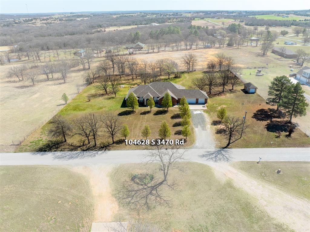 Spacious 3,324 sq ft home on 2.5 acres - 4 beds, 4 baths, and a 3-car garage. Perched on a hill just over 1/2 mile from the paved road, the property includes a storm shelter, fenced yard, and small workshop/storage. Features two living areas and two dining areas. Solid, move-in-ready shell that's ready for your updates - bring it back to life and make it your dream home.