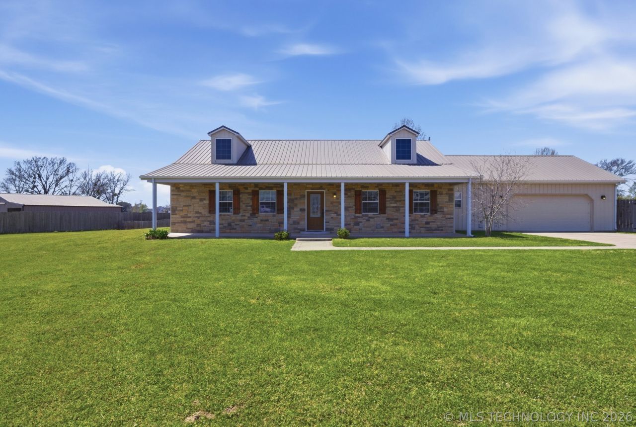 Well-maintained 3 bedroom, 2 bathroom home with a 2-car garage located in the desirable Fort Gibson School District. Nestled on approx 1.43 acres, this property offers a quiet, country-like setting with plenty of space to enjoy. Beautiful kitchen with a gas range, built-in oven and microwave, and solid wood cabinetry, offering both functionality and style. The spacious living area provides a comfortable place to gather, while the large utility room includes additional storage. The home features a thoughtful layout with generously sized bedrooms, large closets, and abundant storage throughout. The primary suite offers privacy and comfort, with an ensuite bathroom. Step outside to a fully fenced backyard, ideal for pets, play, or entertaining. The expansive lot offers room to relax and enjoy the outdoors. House sits on approx. 1.43 acres. This move-in ready property combines space, comfort, and convenience-schedule your private showing today!