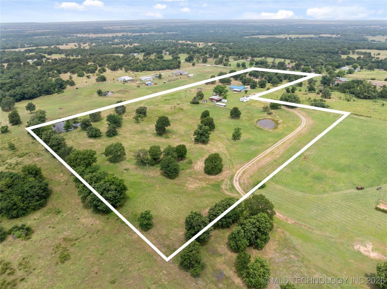 Welcome to your peaceful retreat in Porum, Oklahoma! This 4-bedroom, 2-bath home sits on 15 acres of beautiful land. A long 700-foot concrete driveway leads to a handy circle drive. The property has three ponds as well. You'll love the 20x30 shop with a concrete floor, electric, and overhead door, plus a second 30x30 shop with electric and a concrete slab. There's also a storage shed and two chicken coops! The house runs on city water, but three water wells are on the property too. Mature trees and a barbed wire fence surround the land, giving plenty of space for livestock. Stay connected with high-speed fiber optic internet. Inside, the primary suite is roomy with its own bathroom, and the split floor plan offers privacy. You'll find lots of closet space, a covered back patio, and an in-ground storm cellar for safety. The kitchen comes with all appliances, and the new metal roof (installed in 2020). All mineral rights will transfer to the new owner. This place has it all! Don't miss your chance to own this amazing property!