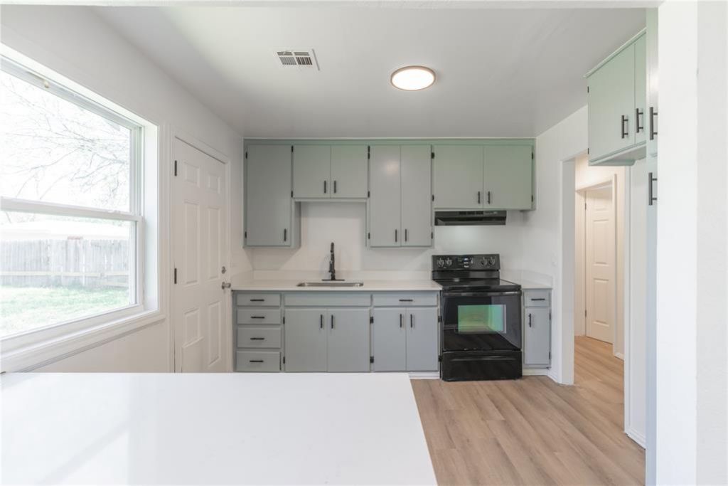 This move-in-ready 4 bedroom home in Shawnee has been beautifully refreshed with new flooring, paint, and trim throughout, offering a clean and modern aesthetic from the moment you step inside. The heart of the home is the updated kitchen, which boasts freshly painted cabinetry, sleek quartz countertops, and a convenient breakfast bar area perfect for morning coffee or casual dining. Curb appeal abounds with a newly painted exterior and a charming covered front porch that invites you to relax and enjoy the neighborhood. Whether you are looking for your first home or a solid addition to your rental portfolio, this stylish and affordable property is a must-see.