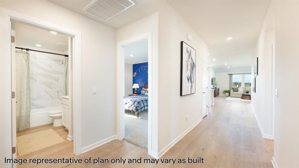 Cali - 4 bed | 2 bath | 1796 sq ftDiscover the Cali plan, one of our new homes in Wild Horse Canyon in Mustang. With 4 bedrooms, 2 bathrooms, and 1796 square feet, this home offers space and comfort. Secondary bedrooms are thoughtfully placed near the entry, leading you into the open-concept living spaces. The kitchen showcases shaker-style cabinets, stainless steel appliances, a pantry, and a central island with sink and dishwasher. At the back, the primary suite provides privacy with an adjoining bath and a generous walk-in closet. This home includes our Home Is Connected smart home package - featuring a camera doorbell, control panel, Kwikset keypad lock, and smart switches. It also comes with a fully sodded yard and a front landscaping package for added curb appeal. This design blends function and style, making it perfect for families searching for new homes in Oklahoma City.