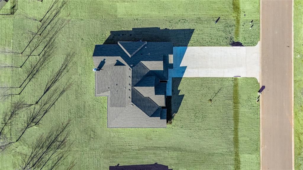 BLINDS INCLUDED! This Lynne Bonus Room floor plan includes 3,805 Sqft of total living space, which features 3,425 Sqft of indoor living & 380 Sqft of outdoor living space. There's also a 650 Sqft, three car garage with carriage doors and an in-ground storm shelter installed. This new build offers 5 bedrooms, 3 full bathrooms, a powder room, a mud and utility room, an oversized bonus room, and tons of extra space for any and all activities. The great room is unlike any other, featuring a center gas fireplace surrounded with a stacked stone detail, eggshell paint on all walls, large windows, a luxurious 3-panel sliding door, rocker switches throughout, wood-look tile, Cat6 wiring, a ceiling fan, and a breathtaking cathedral ceiling with crows feet that extends from the living room to the kitchen. The up-scale kitchen boasts an oversized island with a trash can pullout installed, 3 CM countertops, custom-built cabinets to the ceiling with cabinet hardware installed throughout and under cabinet lighting, decorative end panels, modern tile backsplash, stainless steel appliances, including a 5-burner cooktop and double ovens, a butler's pantry, a separate walk-in pantry, and more wood-look tile. The primary suite sits on the other side of the home and offers a sloped ceiling detail with a ceiling fan, large windows, Cat6 wiring, and a HUGE walk-in closet. The unmatched primary bath features a batwinged vanity with framed mirrors and custom-built cabinets with hardware, 3 CM countertops, a private water closet with an elongated toilet, a free-standing tub, a European walk-in shower, and an extra storage closet. The massive covered outdoor living section features a back patio extension that expands behind the utility room and welcomes a wood-burning fireplace, a gas line, and a TV hookup. Other amenities for the new home include our healthy home technology, a whole home air filtration system, a tankless water heater, R-44 insulation, & so much MORE!