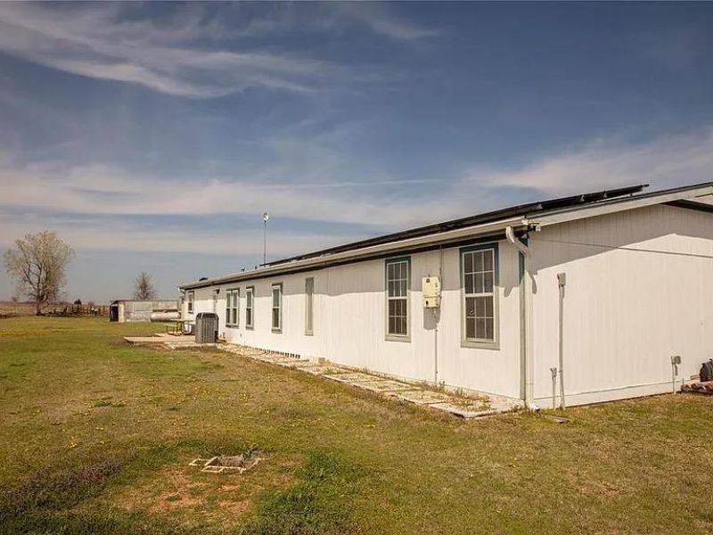 Caddo County. With 6 bedrooms and 3 bathrooms, the layout offers exceptional flexibility for large families, multi-generational living, guest accommodations, or dedicated office and hobby spaces.The updated kitchen and dining area serve as a central gathering place, showcasing custom Kraft hickory cabinets, butcher block countertops, laminate flooring, and a functional island-well-suited for both daily use and hosting.An approximately 660 sq ft rear addition brings the total living area to 2,496 square feet, creating expansive living and entertaining spaces throughout the home.Just beyond the back porch, a scenic 1.6-acre pond provides a peaceful setting and a beautiful natural view, known for holding water consistently even through extended dry periods.The home is equipped with a 22 kW Generac standby generator to ensure uninterrupted power, along with a solar panel system that helps offset energy costs-at times reducing the electric bill to nearly zero during high-production months.Additional improvements include a gravel driveway, private water well, and an on-site storage container, all contributing to the property's practicality and ease of maintenance.Encompassing approximately 61 acres, the land consists of well-kept hay ground suitable for livestock, continued hay production, or recreational use. Predominantly planted in Bermuda and little bluestem, the pasture has been actively managed and recently yielded quality hay.Whether you're seeking a comfortable country residence or a property with the potential for a more self-sustaining lifestyle, this offering delivers a rare combination of usable acreage, modern efficiency, and everyday comfort.