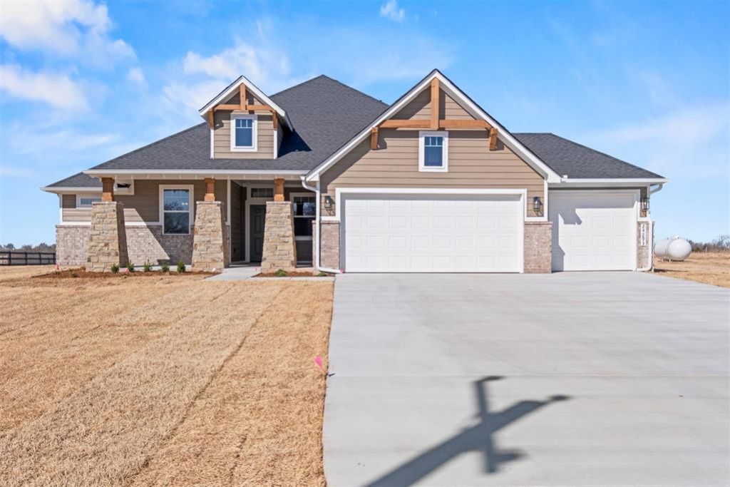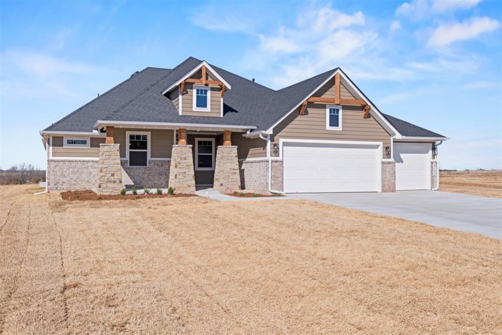 The Stafford in Dow's Hills blends refined craftsmanship with inviting warmth and is on an acre lot. Durable hard-surface flooring flows through open living spaces and a private study, leading to a gourmet kitchen with quartz countertops, built-in appliances with a gas range, a large pantry, and a custom wood vent hood. The primary suite offers laminate flooring, and the primary bath showcases a freestanding tub, spacious tiled shower, double vanities, linen closet, and a walk-in closet with seasonal storage. Enjoy evenings by the brick fireplace or unwind on the extended covered patio. With a 3-car garage and an upstairs bonus room, this home defines upscale country living.Dow's Hills is located between Pennsylvania and Western on SW 240th Street just west of the highly desired Washington Public Schools. This community is within close proximity to I35 and only 35 minutes from downtown Oklahoma City. The one-acre homesites feature rolling hills, ponds, and mature trees. Go ahead and build that storage building on your property, raise show animals, explore the land, and enjoy the perks of life in the country.