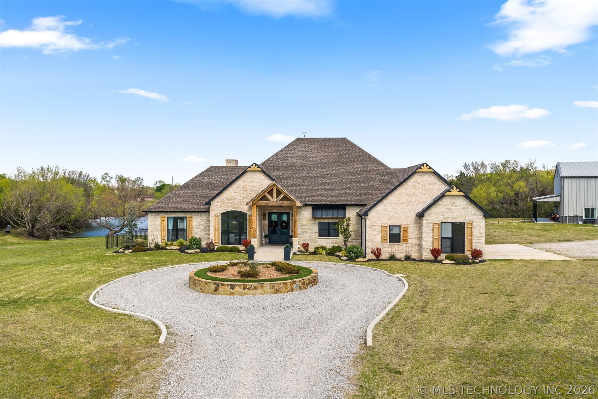 Luxury Living with Acreage in Ardmore, OK | Pool, Shop with Living Quarters, Stocked Pond | Plainview School District- This custom-built home on 14.98 acres in Plainview School District offers a rare blend of space, function, and lifestyle. Inside, expansive ceilings, natural light, and a wall of windows showcase views of the pool, outdoor living space, acreage, and stocked pond. The open living, dining, and kitchen area is designed for everyday living and entertaining. The kitchen features a large marble island with seating, quartz countertops, gas range with steamer, pot filler, glass rinser, convection oven and microwave, plus a coffee and beverage station. Walk-in pantry with pull-out drawers. Living room includes built-ins and gas fireplace. The primary suite offers patio access and backyard views. Ensuite includes soaking tub, double rain shower with bench, dual vanities, and large walk-in closet. Hidden storm shelter adds peace of mind. Secondary bedrooms feature 10-foot ceilings and share a Jack and Jill bath. Additional features include mudroom, oversized laundry, and dog wash station. Outdoor living includes covered patio, outdoor kitchen, fireplace, multiple seating areas, in-ground pool, and fire pit. Pond is stocked with bass, crappie, and catfish, with deer and turkey often seen on the property. The 60' x 40' shop includes 820 sq ft of living quarters with kitchen, living, dining, bedroom, bath, and loft. Features include spray foam insulation, second storm shelter, RV hookup with 50 amp service, and dedicated parking. Additional highlights include tankless water heater, water softener, propane, Lone Grove water, and two aerobic septic systems. If you've been waiting for a property that checks all the boxes, this is it.