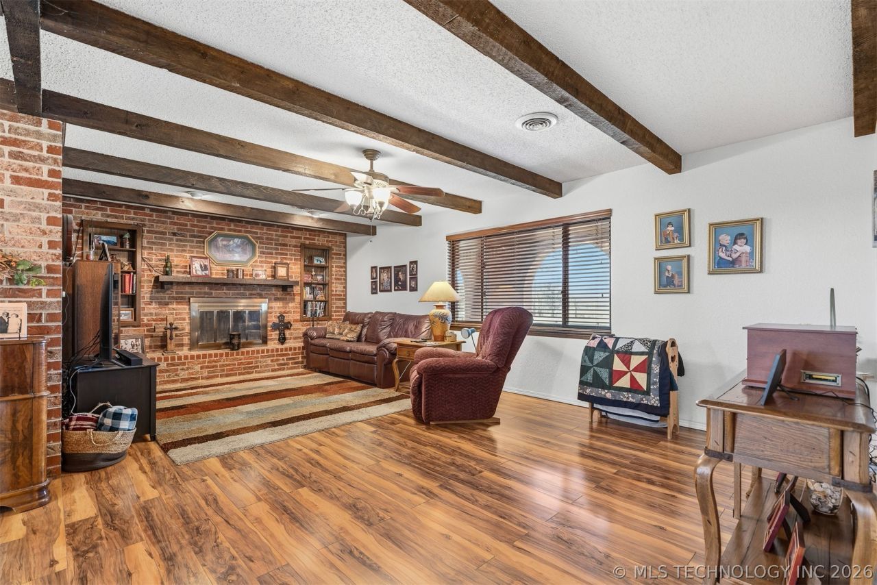 Looking for space, privacy, and a little country charm? Private 5-acre retreat in the Dickson School District offering space, character, and versatility. Set back at the end of a long drive, this property provides a peaceful setting surrounded by mature trees. A new roof will be installed soon, adding even more value. The exterior is accented by a welcoming covered front porch with distinctive arched openings, adding charm and timeless curb appeal. Inside, the home features 3 bedrooms and 2 baths, along with a flexible bonus space (converted garage) ideal for a second living area, home office, workout room, or hobby space. The inviting living room showcases exposed wood beams, a classic wood-burning fireplace, and built-in shelving, creating a warm focal point. The kitchen offers abundant cabinetry, double ovens, and a functional layout that flows into the dining area-perfect for everyday living or entertaining. The primary suite includes two closets for added convenience and storage. Step outside and enjoy the full potential of country living with a 3-car carport, a metal shop with concrete floors and electricity, a basketball court, and two dog pens. The acreage provides plenty of room for a hobby farm, outdoor activities, or simply enjoying the quiet surroundings. The property also includes a water well that is not currently in use, as the home is serviced by rural water. The pool table is negotiable.