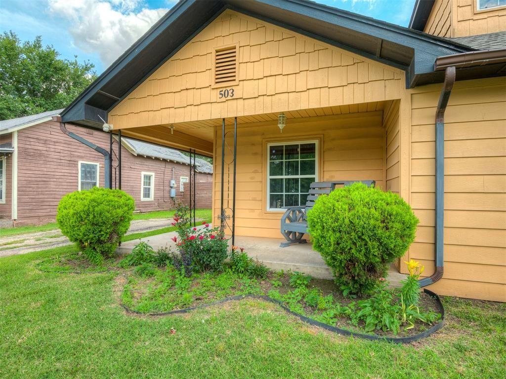 Welcome to 503 W Owens, where classic bungalow charm meets everyday convenience in the heart of El Reno. Perfectly positioned just a few blocks from downtown, this home puts you close to shopping, dining, parks, and local favorites, making daily life feel simple and connected.Picture starting your mornings on the spacious covered front porch with coffee in hand, enjoying the character and charm of this established neighborhood. From there, it is easy to head out and explore whether you are grabbing lunch downtown, stopping by local boutiques, or picking up something special from nearby shops and markets.Inside, this move in ready home offers 3 bedrooms and 2 full bathrooms with a layout that feels both comfortable and functional. The cozy living area features an electric fireplace that creates the perfect space to relax and unwind. Central heat and air provide year round comfort, and the roof was replaced in 2024, giving added peace of mind. Step outside to enjoy the open back patio, ideal for outdoor dining, relaxing evenings, or weekend gatherings. A small outbuilding adds valuable storage space and gives you extra room to stay organized.Location truly sets this home apart. With United Supermarkets just blocks away, nearby parks, a pond, community pool, and quick access to I 40, commuting to Oklahoma City or enjoying weekend adventures is easy. With historic Route 66 running through town, you will love being part of a community known for its character, festivals, and small town charm. Whether you are searching for your first home, a fresh start, or a place close to the heart of El Reno, 503 W Owens offers comfort, convenience, and timeless appeal in one inviting package.