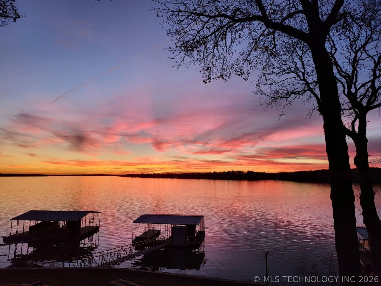 Perched above one of Grand Lake's most desirable areas for crappie and bass fishing, this exceptional waterfront estate offers the perfect blend of comfort, recreation, and scenic beauty. The 4-bedroom, 2.5-bath home features a stunning open-concept kitchen that flows seamlessly into a vaulted living room centered around a warm electric fireplace. Large windows frame peaceful views of Grand Lake, bringing natural light and the beauty of the outdoors into the heart of the home. Situated on more than half an acre, the property includes a private guest retreat complete with wet bar, second fireplace, and a bright enclosed sunroom - ideal for hosting family and friends. Outside, a beautifully designed terraced landscape leads from the home directly to the dock, allowing easy golf cart access for effortless boat loading and lake enjoyment. The private dock is fully equipped with two boat slips, two Sea-Doo ports, a boat ladder, fish cleaning station with sink, and generous storage - thoughtfully designed for both avid anglers and lake enthusiasts. Adding tremendous versatility, the impressive oversized shop offers four parking bays, ample space for an RV, a full bathroom with shower, and a spacious second-floor storage area. Additional highlights include a landscaped and fenced front yard, covered carport, inviting outdoor fire pit, and a whole-home propane-powered generator for added peace of mind. This remarkable Grand Lake property offers an exceptional opportunity to enjoy lake living at its finest - where thoughtful design meets recreation, relaxation, and unforgettable views.