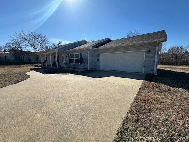 Beautiful home located on the edge of town on a paved road, offering the perfect blend of convenience and country living. Situated on 1.83 (mol) cleared acres, this home features an open floor plan ideal for entertaining and everyday living. The kitchen boasts granite countertops and custom wood cabinetry with an ample size pantry providing both style and functionality. This location is great for sitting on the back patio with a cup of coffee watching nature The spacious primary bedroom includes a large walk-in closet for ample storage. A storm shelter located in the garage offers added peace of mind. Step out back and imagine sitting on the patio with a cup of coffee, simply taking in the peaceful scenery and wide-open views. The detached shop building complete with its own central HVAC system and already plumbed for a bathroom - perfect for a workshop, hobby space, or future guest quarters. A concrete driveway with additional parking adds extra convenience to this well-maintained property. This one truly has room to live, work, and grow!