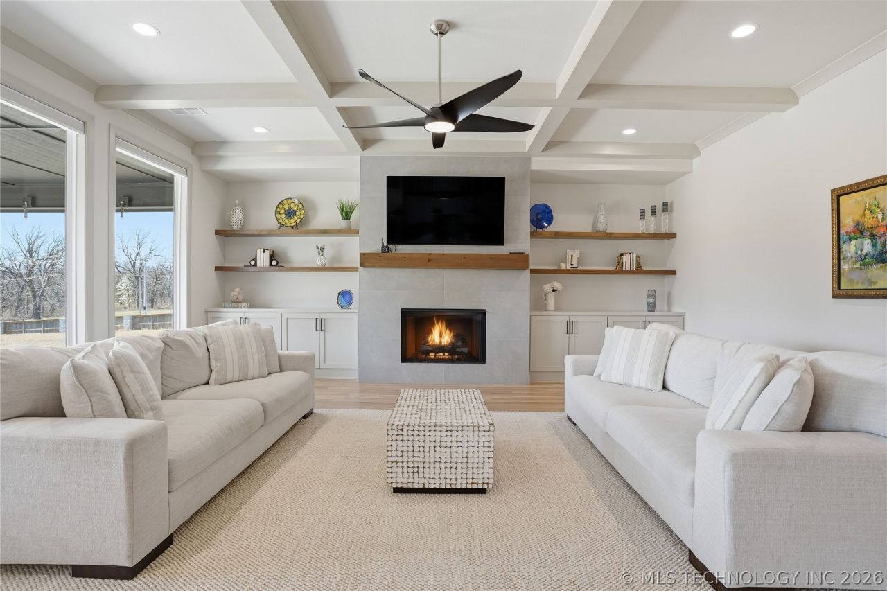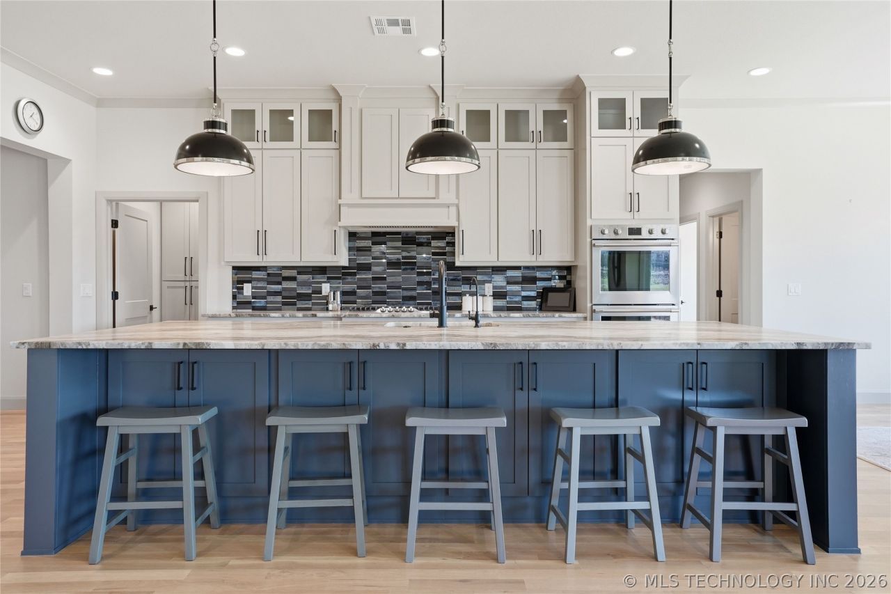 Built in 2023 and meticulously maintained, this exceptional 4-bedroom, 3.5-bath home sits on a spacious half-acre lot in Bixby. With a thoughtfully designed layout and high-end finishes throughout, this home offers style, comfort, and functionality. The main level features three bedrooms, including a luxurious primary suite, plus two expansive living areas filled with natural light from large windows throughout the home. The open-concept living and kitchen space is ideal for entertaining, showcasing white oak hardwood floors, granite countertops, an oversized island, double ovens, and a walk-through butler's pantry with second refrigerator space and custom shades. The primary suite includes an all-season closet with an additional smaller storage closet within it and direct access to a spacious utility room with abundant built-in cabinetry. Upstairs offers a large game room, flex room/dedicated office space, and an additional bedroom for added flexibility. Tons of built-in storage throughout ensures everything has its place. Additional highlights include a reverse osmosis water filtration system, extra-wide driveway, quick highway access, nice view with an adjacent vacant lot, and massive living space. Empty lot next door is also available for purchase and owned by the seller. This home truly shows better than new and offers space to play, garden, or create your dream outdoor retreat on the expansive half-acre lot.
