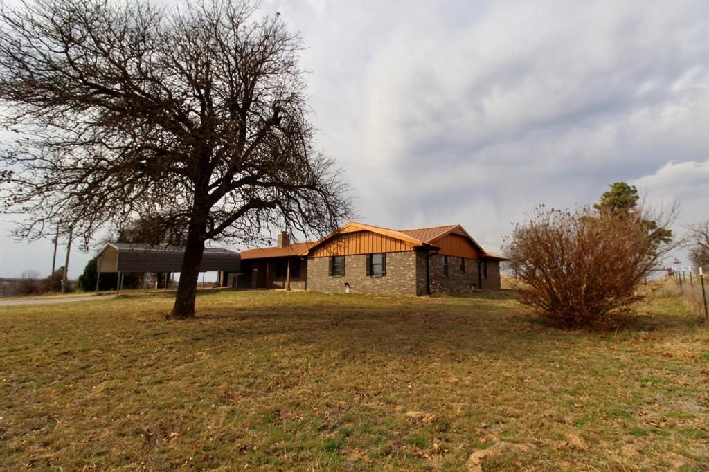 WOW!! Check out this beautiful brick home with a copper metal roof situated on 10 fully fenced acres ready for livestock! Boasting 3 bedrooms, 2 baths with HUGE walk in showers. Fitted with all new black gutters and black garage door for that perfect pop of color. Recently added a 2 car carport and 14 inches of treated insulation from Orkin. The attic was completely redone and sealed properly preventing pests, rodents, and insects. The inside of the home was completely remodeled within the last 5 years with all new flooring, paint, countertops, and bathrooms. With a spacious, open layout to work well with the space! This property is a must see! Call or text today for a showing, you don't want to miss this one!!