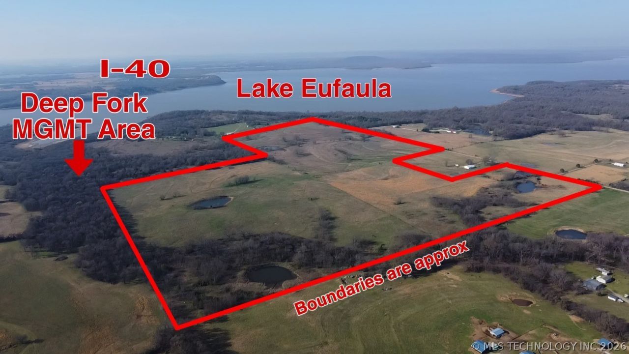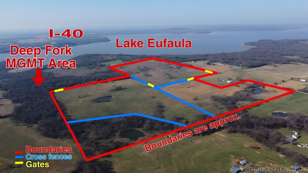 Escape to 145 (m/l) acres of scenic Oklahoma countryside featuring 7 stocked ponds, lush Bermuda and fescue pastures, and wide-open space to roam. Fully fenced and cross-fenced into 3 sections, this property is perfect for cattle, horses, or a private retreat. A water well is already in place, with gas, electric, and rural water available at the road. The southeast corner connects directly to Corps land, giving you access to Eufaula Lake for fishing, hunting, and outdoor adventures right out your back gate. Just 1/2 mile off a paved road with the flexibility to build or place a mobile home-this is your chance to own a versatile piece of land with both beauty and function.